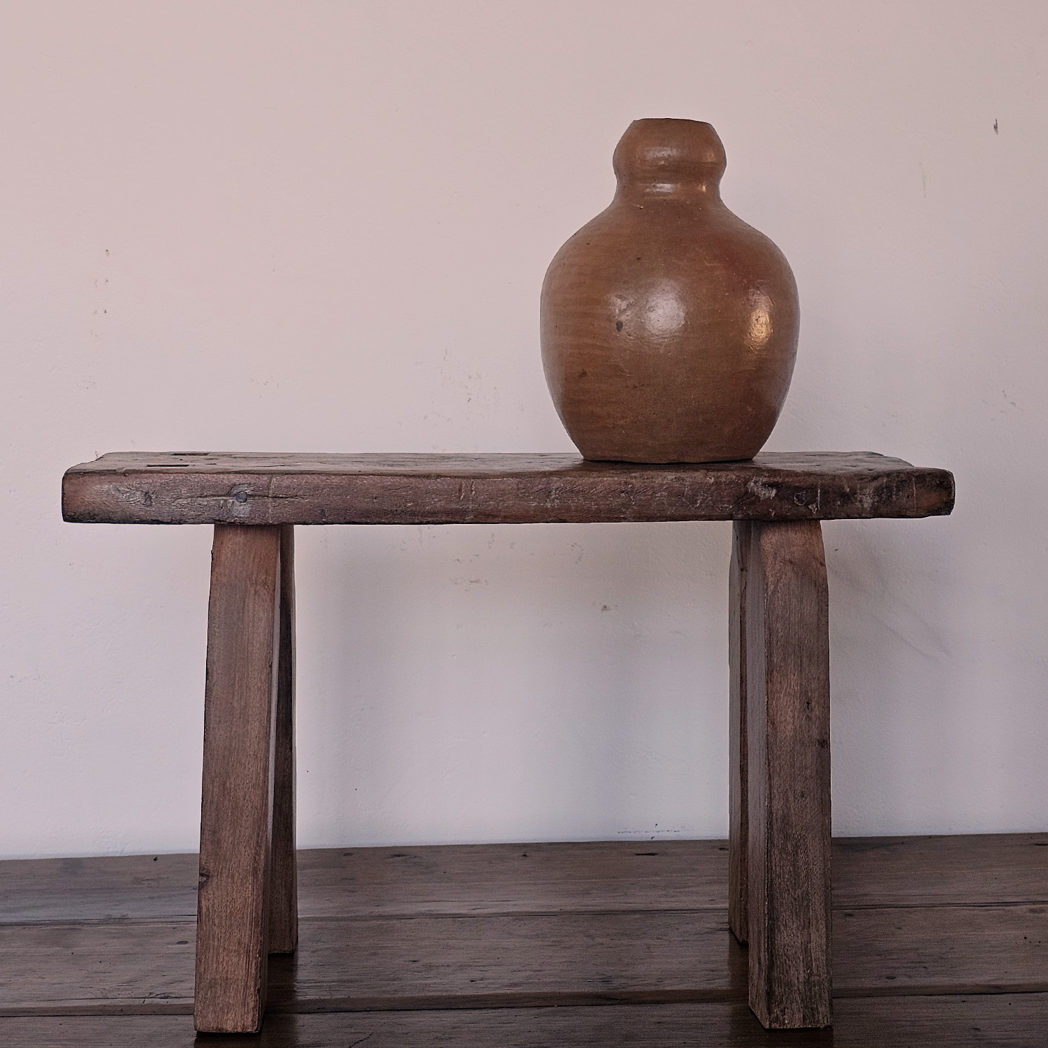 Autêntico banquinho retangular da década de 60, esta peça celebra a beleza atemporal do design rústico.