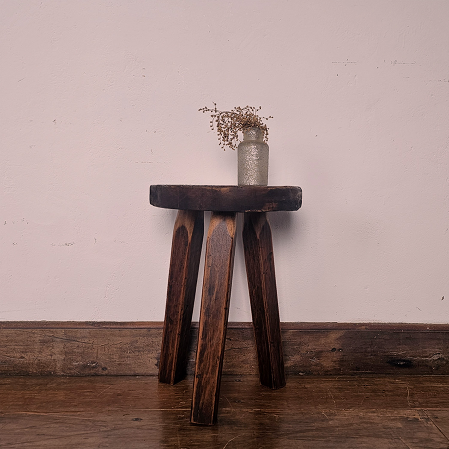 O design simples e funcional apresenta um assento redondo e três pés robustos.