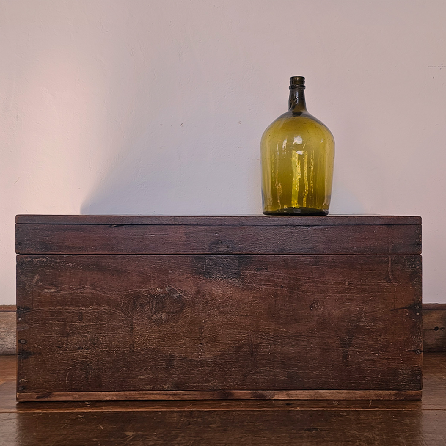 Com estrutura retangular robusta e acabamento envelhecido, apresenta marcas do tempo que valorizam sua originalidade e autenticidade.