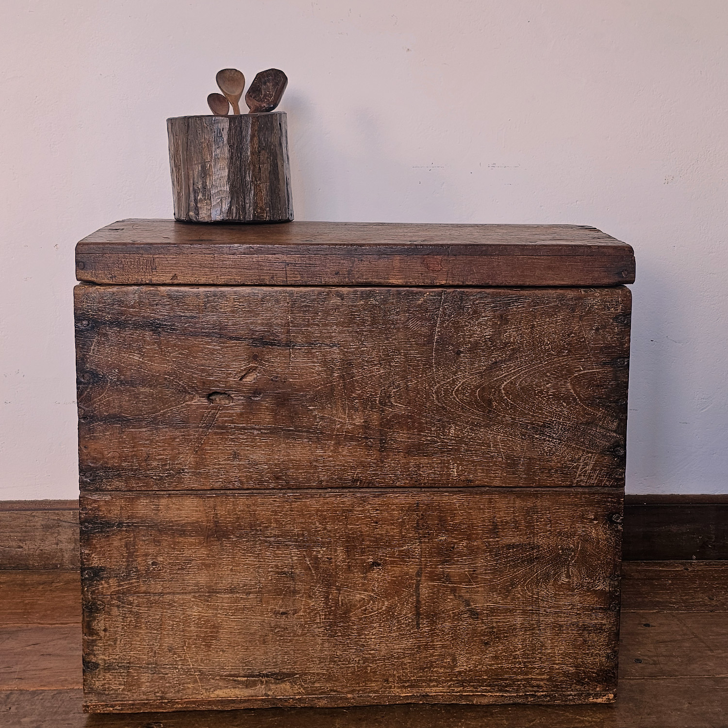 Este autêntico caixote de madeira é uma peça original do início do século XX, proveniente do interior de Minas Gerais.