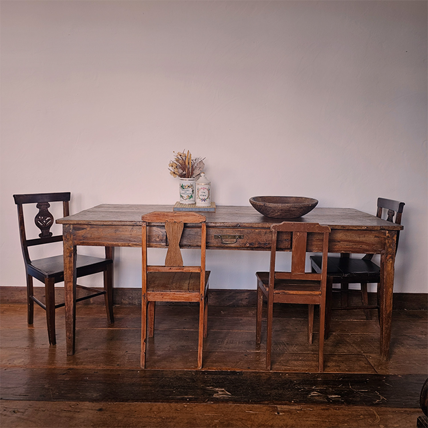 Mesa de jantar autêntica do início do século XX, uma peça que conta histórias.