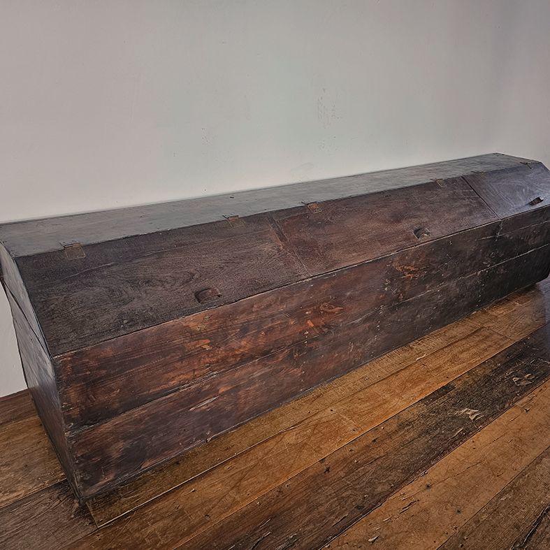 Com 3,49 metros de comprimento, sua estrutura robusta e alongada abriga sete compartimentos internos com tampas individuais, originalmente utilizado para armazenar diferentes tipos de grãos.